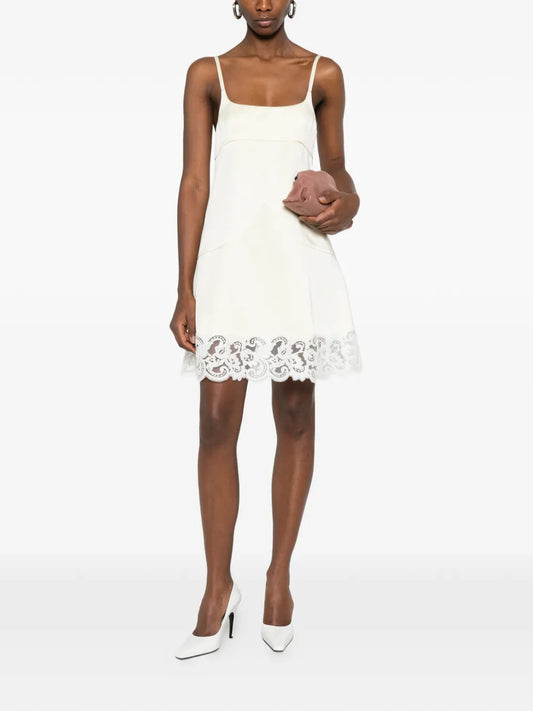Abito corto con rifinitura in pizzo