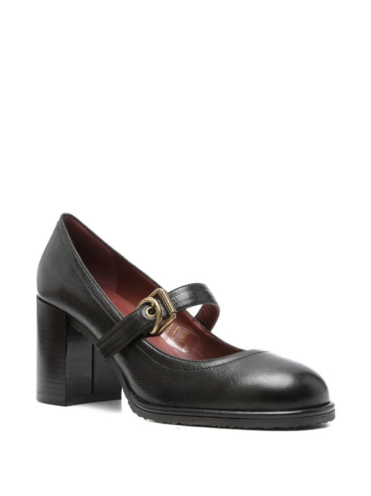 75mm buckle-strap block-heel pumps